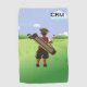 Ein lustiges Cartoon-Design mit einem Golfer in Vintager Kleidung stehend in der rauen Blick auf das Grün und Fahne. Der Golfer trägt eine Golftasche mit Golfschlägern. Jeder Name oder jede Initiale kann eingegeben werden, um ein einzigartiges personalisiertes Golfgeschenk für den Golfer oder Golffan zu schaffen