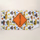 Dieses Badetuch, mit seinen Spaßillustrationen der Baufahrzeuge, Zeichen und Schutzhelme, ist für zukünftige Auftragnehmer und Bauarbeiter groß. Personifizieren Sie mit dem Namen Ihrer Wahl, der auf einer Orange erscheint, Bauzone Verkehrsschild.