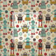 Spaß-Retro Roboter-illustriertes Muster (Creme) Stoff