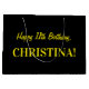 Eine Seite dieses lustigen und einfachen Geburtstags-Thema Giftbag Design verfügt über eine große Zahl "11" mit einem dunkelrosa und hellrosa Streifen Muster. Die andere Seite hat die Geburtstagsgrüße "Happy 11. Geburtstag" und einen personalisierbaren Namen, beide in gelbem Text. Der Hintergrund ist schwarz. Eine Geschenktasche wie diese kann verwendet werden, wenn Geschenke verpackt oder Geschenke zu Ehren von jemandem elften Geburtstag gegeben werden. [~Z0000378]