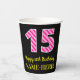 Spaß rosa Streifen "15": Glücklicher 15. Geburtsta Pappbecher