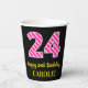 Spaß rosa Streifen "24": Glücklicher 24. Geburtsta Pappbecher