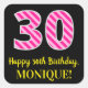 Spaß rosa Streifen "30": Glücklicher 30. Geburtsta Quadratischer Aufkleber