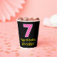 Spaß rosa Streifen "7": Glücklich 7. Geburtstag + Pappbecher
