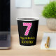 Dieses fröhliche, zum Geburtstag bestimmte Quadrat-Aufkleber-Design mit einer großen Zahl "7", mit einem hellrosa und dunkelrosa Streifen Muster. Es enthält auch die Meldung "Happy 7th Birthday,", plus einen individuelle Name. Der Hintergrund ist schwarz. Fröhliche Papiertassen wie diese könnten sich bei einer Geburtstagsparty für jemanden, der seinen 7. Geburtstag feiert, amüsieren lassen. [~Z0000580]