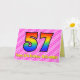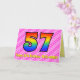 Dieses lustige und optimistische 57. Geburtstag Grußkartendesign hat eine Vorderseite mit einer großen Zahl "57" mit einem bunten Muster inspiriert durch das Aussehen eines Regenbogenspektrums, auf einem lustigen dunkelrosa und hellrosa Herz Formen Streifen Muster Hintergrund. Auf der Vorderseite befinden sich auch die Meldung "Happy 57 th Birthday" und ein bearbeitbarer Empfängername. Im Inneren befindet sich eine individuell angepasste Geburtstagsgrüßbotschaft, oder man könnte sie löschen und leer verlassen werden, wenn eine Nachricht von Hand geschrieben werden soll. Eine individuell gestaltbare Geburtstagskarte wie diese könnte eine lustige und glückliche Art sein, jemandes siebenundfünfzigsten Geburtstag zu bestätigen. [~Z0000418]