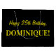 Eine Seite dieses Spaßes und einfachen Geburtstag-themenorientierten Geschenktaschenentwurfs hat eine große Nr. "25", ein dunkles rosa und hellrosa Streifenmuster kennzeichnend. Die Geburtstagsgrußmitteilung "glücklicher 25. Geburtstag," und ein personalisierter Name erscheinen auf der anderen Seite, beide in Gelb farbigem Text. Der Hintergrund hat einen schwarzen Farbton. Geschenktaschen so konnten benutzt werden, als, die Geschenke oder Geschenke einwickelnd, die zu Ehren jemand fünfundzwanzigster Geburtstag gegeben werden. [~Z0000378]