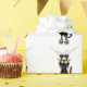 Spaß-schwarze Katze, die unten Packpapier fällt
