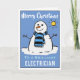 Spaß Schneemann Cartoon auf einer Weihnachtskarte. Weihnachtskarte für einen Elektriker.