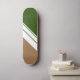 Dieses moderne, elegante Design zeichnet sich durch drei weiße, unterschiedliche Breiten, diagonale Parallelstreifen gegen mochafarbene und waldgrüne Hintergründe aus.