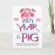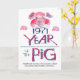1971 "Jahr des Schweins" chinesische Tierkreis-Geburtstagskarte listet berühmte "Schweine" wie Carl Jung und Henry Ford, zusammen mit Persönlichkeitsmerkmalen auf. Innerer Text kann besonders angefertigt werden oder entfernt werden.