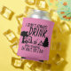 "Ich trinke nicht immer, wenn ich Camping bin... Oh, warte, ja, ich tue!" Camping-Design mit schwarzem Text und einem Lagerfeuer mit "Rauchsignalen", Bäumen, Zelt und Camper auf einem rosa Hintergrund. Glückliches Camping!
