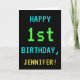 Dieses einfache, lustige Geburtstagskarten-Design enthält eine Nachricht wie "HAPPY 1st BIRTHDAY, JENNIFER!". Es erinnert an das Aussehen Vintager oder klassischer Computerspiele der 80er und frühen 90er Jahre. Der Name auf der Vorderseite und die Nachricht auf der Innenseite können angepasst werden. Es könnte jemand geschickt oder gegeben werden, der seinen ersten Geburtstag feiert und gerne ältere Videospiele spielt. [~Z0000099]