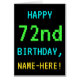 Dieses einfache, lustige Geburtstagskarten-Design enthält eine Nachricht wie "HAPPY 72. BIRTHDAY, NAME-HERE!". Es erinnert an die Vintagen oder Retro-Videospiele der 80er und frühen 1990er Jahre und erinnert durch ein lustiges, pixeliges Aussehen an das Erscheinungsbild. Der Name auf der Vorderseite und die Meldung auf der Innenseite können personalisiert sein. Es könnte jemandem geschickt oder gegeben werden, der seinen siebzigsten zweiten Geburtstag feiert und der gerne ältere Videospiele spielt. [~Z0000099]
