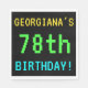 Dieses lustige Papier Serviette Design beinhaltet eine Nachricht wie "GEORGIANA'S 78. BIRTHDAY!". Es erinnert an die Vintagen oder Retro-Videospiele der 80er und frühen 1990er Jahre und erinnert durch ein lustiges, pixeliges Aussehen an das Erscheinungsbild. Der Name kann angepasst werden. Es könnte auf einer Geburtstagsparty für jemanden verwendet werden, der seinen achtundsiebzigsten Geburtstag feiert und gerne Retro-Videospiele spielt. [~Z0000098]