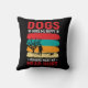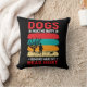 Farbenfrohe Hundefreunde gestalten das Kissen mit rot, weiß, blau, gelb und creme auf einem Hintergrund, den Sie zu jeder Farbe, die Sie gewollt können, mit einer Silhouette Baum und Person mit einem Hund und Text liest Hunde Make Me Happy Humans Make My Head Hurt!