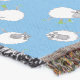 Eine, mit einem Muster der Comicschafe, auf einem Himmel-Blauhintergrund besonders anzufertigen Throw-Decke. Von einer wunderlichen Illustration durch Judy Adamson, können Sie die Skala des Schafmusters besonders anfertigen.