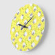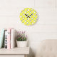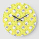 Eine lustige "Wales Forever" Wall Clock, mit einem Muster von Comic Schafen und "Cymru am Byth" in Rot, auf einem sonnenglänzenden gelben Hintergrund, den Sie ändern können, wenn Sie möchten.