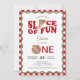 Eine lustige, schwingende Pizza zum ersten Geburtstag Einladung.