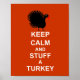 Großes Poster für den Weihnachtsfeiertag "Behalt Calm and Stuff A Turkey" mit einer Funny Putenkey Silhouette auf rotem Hintergrund.