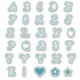 Spaß Wirble aquamarine Farbe Schriftart Typografie Monogramm Text Hauptstadt Buchstaben Alphabet Aufkleber Pack für die Monogrammatisierung, Personalisierung, Anpassung, Notenschrift, Zeitschriften, Notizbücher, und mehr. Dieses Set beinhaltet auch einen Ausrufepunkt, Herz, Blume und Stern.