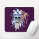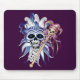 Karnevalart Spaßvogelschädel mit New- Orleansartmaske hält einen Goldschädel Spaßvogel Scepter.