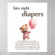 Fügen Sie Ihrem Mädchen mit diesem hübschen Poster "Spate Night Diapers" etwas Lachen hinzu! Dieses charmante Schild mit einer süßen Aquarellillustrierung eines niedlichen Teddybären mit einem rosa Ballon lädt die Gäste dazu ein, lustige, süße oder ermutigende Botschaften auf Windeln zu schreiben, um den Eltern ein dringend benötigtes Lächeln bei späten Nachtwechseln zu geben. Bestellen Sie noch heute Ihre Babydusche, damit Sie sich rundum wohl fühlen!