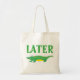 Die Tote Tasche zeigt eine originelle Marker-Abbildung eines grünen und gelben Cartoon-Alligators, mit LATER in einem lustigen grünen Schriftart. Der perfekte Weg, um SPÄTER, GATOR zu sagen! Sehen Sie nicht, wonach Sie suchen? Brauchen Sie Hilfe bei der Anpassung? Kontaktieren Sie Rebecca, um etwas für Sie entworfen zu haben.