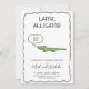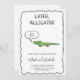 Ein Spaß, die Party Einladung mit einem lächelnden Alligator zu vertreiben. Die Karte lässt sich leicht mit Ihren Formulierungen, Schriftart, Schriftart, Papierform und Papiersorten anpassen. Nicht genau das, was Sie suchen? Alle unsere Produkte können auf Ihre Bedürfnisse zugeschnitten werden, ohne Aufpreis. Kontaktieren Sie uns einfach