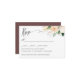 Diese elegante botanische RSVP-Karte wurde speziell für die späte Sommerkollektion entworfen und verfügt über einen ausgeklügelten Aquarellzweig aus Blume, Eukalyptus-Blätter, Orangenschnitt und Blattwerk in einer frischen Farbpalette aus Weiß, Elfenbeinorange, Grün und Rosa auf der oberen rechten Seite der Karte mit Ihrem Wunschtermin und einer Auswahl an Speisen oder Vorspeisen. Karten kehren zu einer ungewöhnlichen schokoladenbraunen Farbe zurück. Eine kalligraphische Touch schmückt die Karte. Modernes und elegantes Design für elegante Hochzeiten zu jeder Jahreszeit. Wir können Farben, Schriftart und mehr ändern, um Ihr Design einzigartig persönlich zu machen Für Hilfe oder individuelle Anfrage kontaktieren Sie uns bitte über den Shop oder schreiben Sie unter citronelladesign@gmail.com