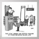 Der lustige Cartoon eines Mannes, der ein Bücherbuch in seine örtliche Bibliothek zurückschickt, nur um festzustellen, dass die Strafe für Verspätung dramatisch gestiegen ist. Vielleicht ein Geschenk für einen Bibliothekar. Illustration zeigt die Bestrafung der Hauptstadt durch Guillotine. Richter trägt eine schwarze Mütze im Gerichtssaal. Rechtlicher Spaß.