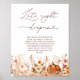 Das Little Pumpkin Fall Floral Spate Night Diapers Game Poster verkörpert das Wesen von rustikaler Eleganz und herbstlichen Charme und lädt Liebhaber ein, die bevorstehende Ankunft eines wertvollen kleinen inmitten der Schönheit der Herbstsaison zu feiern. Mit seiner skurrilen Darstellung rustikaler Wildblumen und einem charmanten Kürbis, symbolisiert das Stück Wärme und Überfluss, die Bühne für eine Ansammlung voller Liebe, Lachen und wertvollen Erinnerungen. Ergänzt wird die rustikale Ästhetik durch die elegante moderne Kalligraphie, die den Gegenständen eine raffinierte Touch verleiht, die ein Gefühl der Raffinesse und des Stils hervorruft. Mit seiner Mischung aus rustikalem Charme und moderner Eleganz verspricht dieses Stück eine Babydusche, die so bezaubernd wie denkwürdig ist, wo sich Familie und Freunde treffen, um die Eltern mit Liebe und Segnungen zu duschen, während sie sich auf dieses neue Kapitel ihres Lebens begeben. Matching-Elemente sind verfügbar.