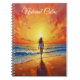 Spazierender Meeresstrand Warmlaufen Sonnenunterga Notizblock