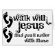 Christliche T - Shirt und Geschenkideen, die Fußspuren auf der links Seite mit dem Sprichwort, Walk mit Jesus und du wirst nie alleine gehen.