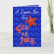 Erster Amerikanische Unabhängigkeitstag Grußkarte für ein spezielles Mädchen mit niedlichen roten Sternen auf einem blauen Himmel gefüllt mit den Lichtern des Unabhängigkeitstages Feuerwerk. Inside text kann mit der bereitgestellten Vorlage personalisiert werden. Originelle Kunst und Design von Anura Design Studio.
