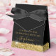 Elegante Dreieck-Gefälligkeitsbox im Mini-Zelt-Stil mit gelbem goldenen Glitzer-Rahmen und Konfetti-Sprinklen auf schwarzem Hintergrund mit individuellem Dankeschön-Text, perfekt für einen modernen und schicken Geburtstag, Fledermausmitzvah, Quinceañera, Brautparty, Babydusche oder Junggeselinnen-Abschied. Klicken Sie auf KUNDENFÖRDERN, um die Schriftart, Farben und das Layout zu ändern und so eine personalisierte und lustige Vorzugsbox für Ihre Party Gäste zu schaffen.