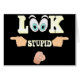 Ein humorvolles Produktdesign mit Fingern, die nach außen und nach vorn zeigen, als ob sie auf alle zeigen, außer auf sich selbst. Das Zitat "Look Stupid" zeigt dieses Produkt. Personalisieren Sie dies mit Ihrem Text oder Foto, und wenden Sie das Design auf jedes andere Element.