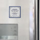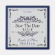 Speichern Sie den Date-Magneten für den angezeigten Kühlschrank. Dieses ist quadratisch und in einem saphir blauen, silbergrauen und schwarzen Vintagen blüh-Thema gezeigt. Vorformatierter Text für Sie, um mit Namen und Datum zu personalisieren. Passen Sie dieses Element an und ändern Sie den Text in Ihren Text. Börsenbild freepik.com