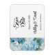 Speichern Sie den Date-Magneten wird in einem klassischen formalen Layout in der Farbe weiß angezeigt, mit schwarzem Text und Skripttext, der die Braut- und Gräuelnamen hervorhebt und mit einem Hydrangea-Blume-Druck akzentriert ist. Klicken Sie auf die Schaltfläche Anpassen, gehen Sie rechts zu den Textfeldern und ändern Sie den entsprechenden Text in Ihren Text. Lizenziertes Bild