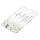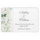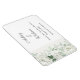Dieser Magnet "Datum speichern" wird in einem klassischen Formlayout in der Farbe Weiß angezeigt. Grauer Text und Skripttext, der die Namen von Braut und Groom hervorhebt und mit einem Blume-Druck von Rosen in Weiß akzentuiert. Klicken Sie auf die Schaltfläche, wählen Sie rechts die Textfelder aus und ändern Sie den entsprechenden Text in Ihren Text.