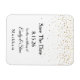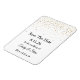 Dieser Save the Date flexible Magnet wird in Weiß mit kleinen goldenen Sternen gezeigt. Passen Sie dieses Element an, und ändern Sie den Text mit dieser Vorlage in Ihren Text.