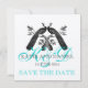 Elegante Hochzeitkarten Ankündigung Datum freihalten mit Pfauen, Monogrammen und Namen auf Metallic Silver Paper Stock. Wählen Sie "Anpassen" und ersetzen Sie den Beispieltext durch Ihren eigenen. Auch wählen Sie Ihre Farben und Papier Wahl. ©2011 Elke Clarke