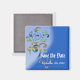 Speichern Sie den Datums-Magneten. Tropische Farbe Stil Blumenmuster im blauen Hintergrund.