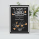 Hochzeitstorte Die Datumskarten sind ein beliebtes Vintages Chalkboard-Design mit orangefarbenen Schmetterlingen