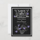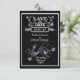 Hochzeitstorte Die Datumskarten, die ein beliebtes Vintages Chalkboard-Design mit lila Schmetterlingen sind