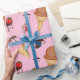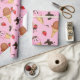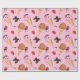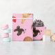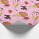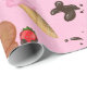 Rosa- und Schokoladeneis-Kons und Erdbeeren auf rosafarbenem Papier