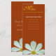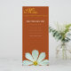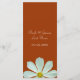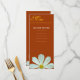 Dinner Menü Karte. Weiße, dunkle Blume im braunen Hintergrund.. für Hochzeiten, Tagungen, Partys, Feiern.
