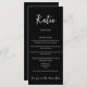 Dieses wunderschöne Wedding Menu und der Tischsitzname zeichnen sich durch handgeschriebene Kalligraphie mit minimalistischem Schwarz-Weiß-Design aus. Wenn Sie ein elegantes Tischgestylungsdesign erreichen und gleichzeitig Geld auf Tischkarten gerettet haben möchten, ist dies das perfekte Design für Sie. Außerdem können Sie dieses Menü für jeden Anlass nutzen, der nicht nur Ihre Hochzeit sein muss! Editieren Sie einfach den Text, um ihn an Ihre Veranstaltung anzupassen, sowie Text und Hintergrundfarbe. Klicken Sie auf den Button 'Weiter anpassen' und beginnen Sie mit dem Erstellen.