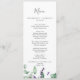 Diese rustikale Lavendel- und Eukalyptus-Dinner-Karte ist perfekt für eine einfache und elegante Hochzeit im Freien. Das Blumendesign zeichnet sich durch Aquarelleukalyptus-Blätter und Grünpflanzen mit lila Wildblumen aus. Diese Speisekarte kann für Hochzeitsfeiern, Proben oder jede Veranstaltung verwendet werden.