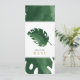Single grüne tropische Blatt Hochzeit Dinner Menü Vorlage. Weißer Hintergrund mit Goldakzent.